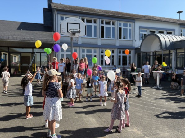 Zu Beginn des Schuljahrs hießen wir 19 neue Erstklässler in der Grundschule Heidenburg willkommen. Bei der Einschulungsfeier auf dem Schulhof begrüßten alle Kinder ihre neuen Schulkameraden zunächst mit einem gemeinsamen Lied. Anschießend führte die zweite Klasse einen Sketch zum Thema "Mut" auf, dem sich unser Schulleiter mit seiner Willkommensrede anschloss. Abgerundet wurde das Programm musikalisch durch die dritte Klasse mit dem "Einschulungsrap".