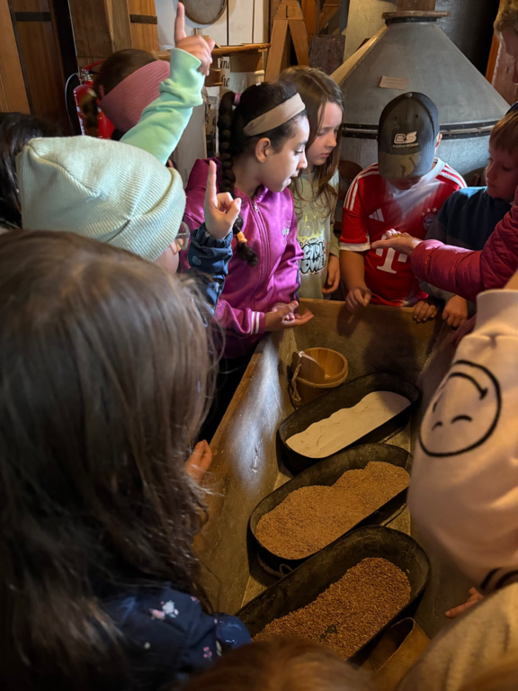 Im Rahmen unserer Getreideeinheit hat die dritte Klasse die Molitorsmühle besucht. Wir haben eine sehr interessante Führung durch die Mühle gekriegt, durften mit dem Mehlaufzug fahren und haben am Ende gemeinsam Stockbrot gemacht. Es war ein toller Ausflug!