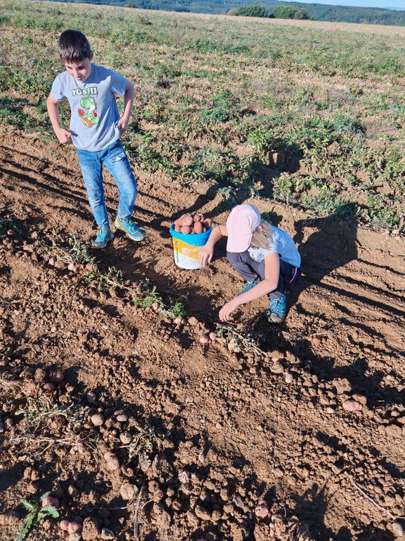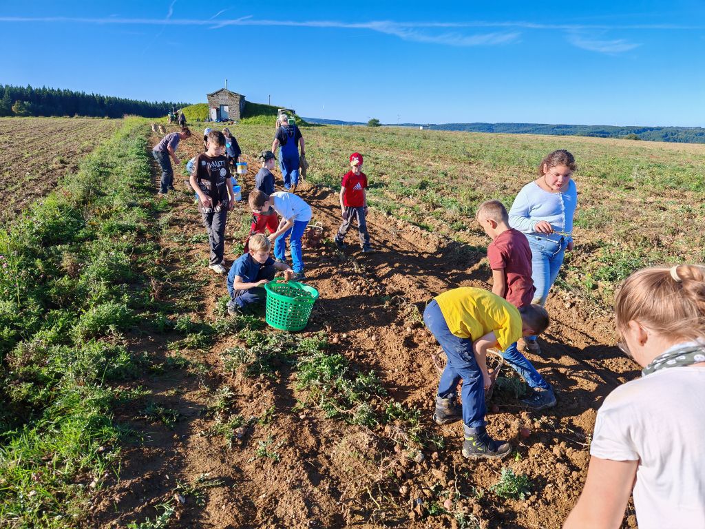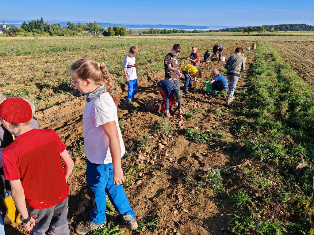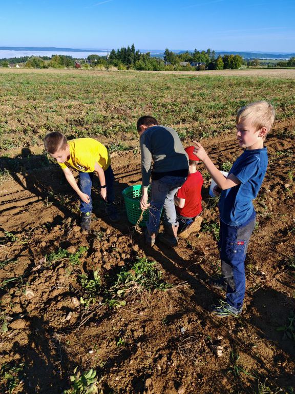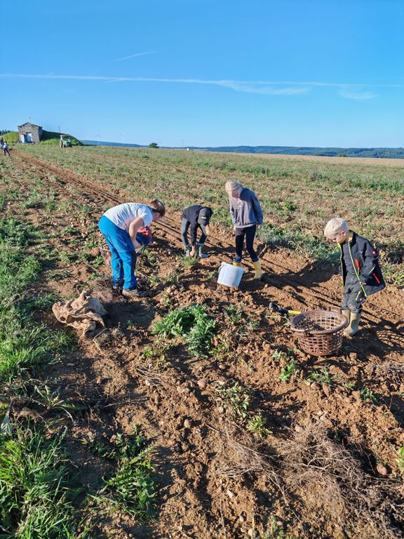 Kurz vor den Herbstferien durfte die vierte Klasse ihr Wissen zum Thema "Kartoffel" auf dem Feld eines Mitschülers anwenden und vertiefen. Mit viel Eifer und Motivation machten wir uns an die Arbeit und hatten sehr viel Spaß!