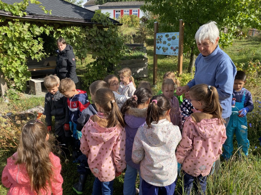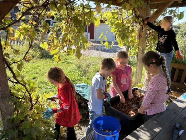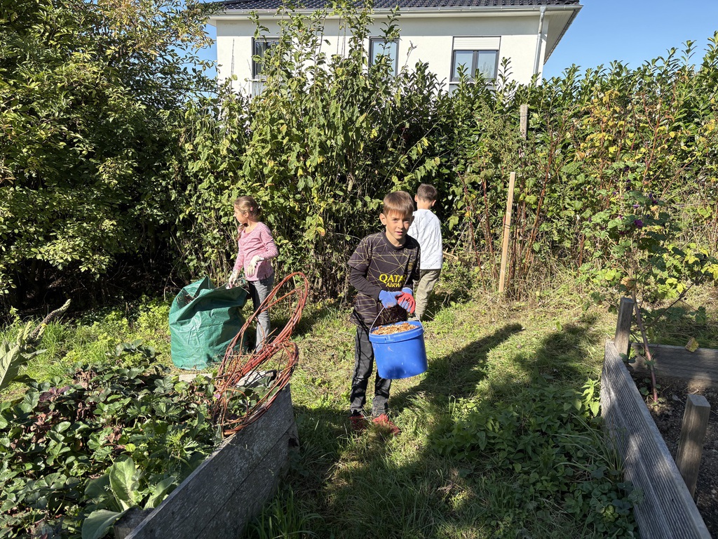 Im wöchentlichen Wechsel kümmern sich auch dieses Schuljahr alle Klassen um die Pflege unseres Schulgartens. Dank Marias tatkräftiger Unterstützung und Anleitung lernen wir viel über die Planzen- und Tierwelt in unserem Garten sowie wichtige Aspekte der Gartenpflege.