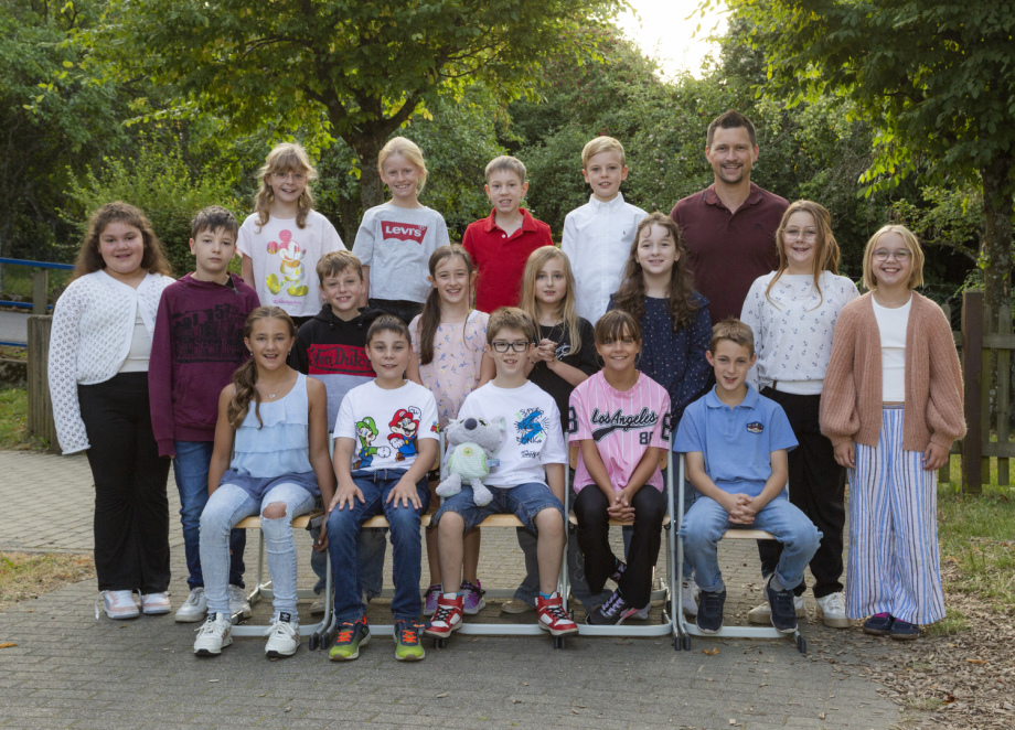 Klasse 4 mit Klassenlehrer Herr Lang (und Schulassistentin Frau Petter)